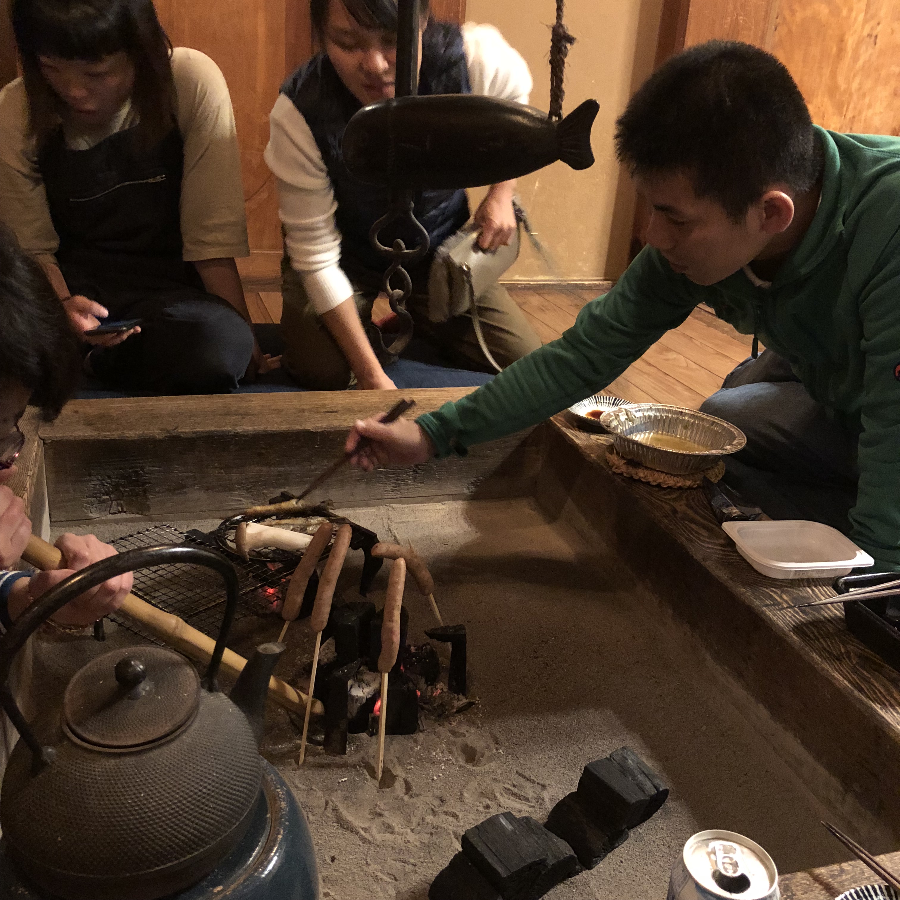 夜ご飯は持参型です。近くにスーパーがあったのでそこで買って囲炉裏でお好みで焼けます。